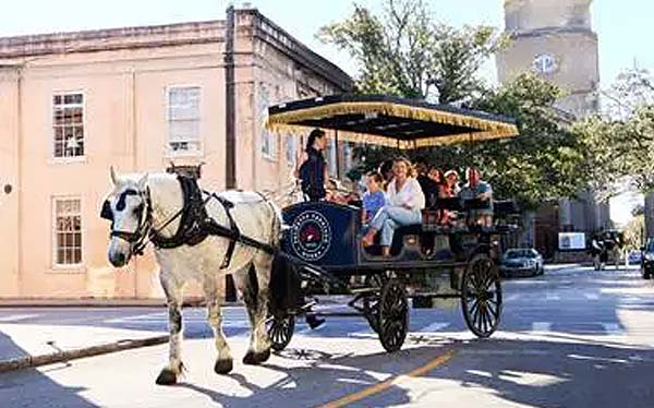 Palmetto Carriage tour guides will take you on a horse-drawn carriage ride throughout Charleston’s historic areas.