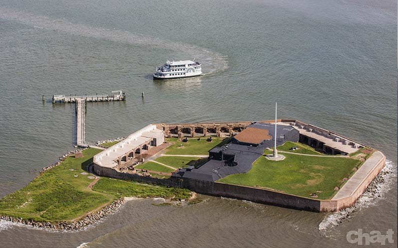 Cruise Charleston Harbor and pass by notable American landmarks, including Fort Sumter, the aircraft carrier USS Yorktown, Charleston Battery, the Ravenel Bridge, and Castle Pinckney.